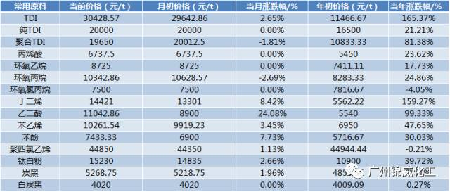 涂料原材料價(jià)格上漲參考表(常用原料類)——12月12日